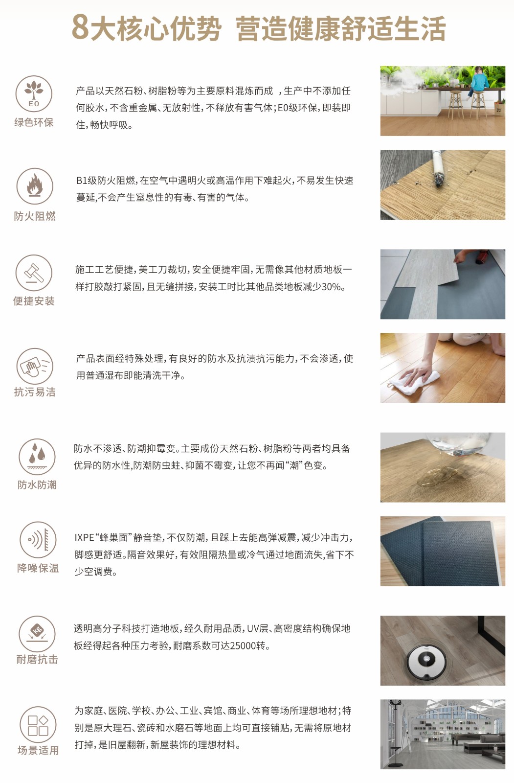 科居产品分为七大类:门类木塑配套产品、泛家居系列、木塑防水门系列、地产精装修配套、各类木塑配套产品、防水浴室柜、墙顶系统。
